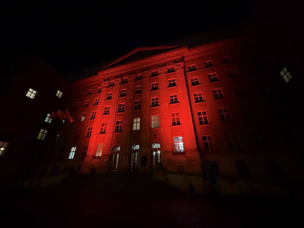 Do realizacji tej aranżacji wykorzystaliśmy lampy Brighter ProBar 18 IP, które zapewniły intensywne i równomierne oświetlenie elewacji. Czerwona iluminacja przyciągała uwagę przechodniów i tworzyła podniosły klimat, wzmacniając przesłanie wydarzenia. Jesteśmy dumni, że nasza praca mogła stać się częścią tej ważnej inicjatywy.